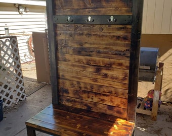 Robust, simple and full of character. Here's were i got a little creative. /r/diy should not be your first stop for your question. The tree can hold many jackets and hats and the storage bench is a great place to sit when putting on or taking off boots. Will paint the window part of door with chalkboard paint or maybe install mirror.