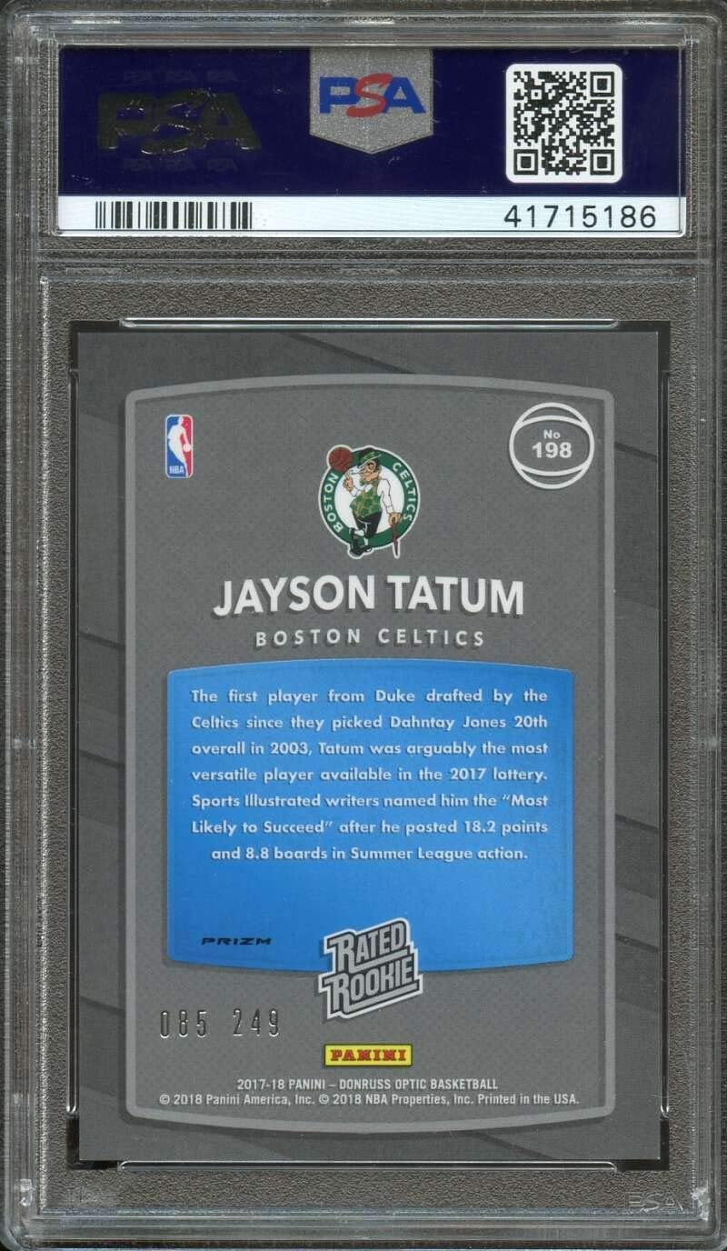 Jayson Tatum 2017 18 Donruss Optic Fast Break Rated Rookie Orange 5 193 Bgs 9 5 Steel City Collectibles from www.steelcitycollectibles.com 2017 panini optic jayson tatum rated rookie card rc psa 10 gem mint celtics #198. Numbered 16 the card shows tatum with the ball looking for an open man or a path to make his break towards the hole. View jayson tatum basketball card values based on real selling prices. Small forward and power forward ▪ shoots: He actually played sg in his rookie year they ran jaylen at the 3 while horford was there for there rookie and sophomore year rookie omfor tatum and sophomore for brown. Jayson christopher tatum (born march 3, 1998) is an american professional basketball player for the boston celtics of the national basketball association (nba). Ufc mixed martial arts (mma) trading cards. March monthly card auction ending march 20.